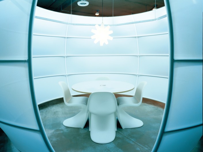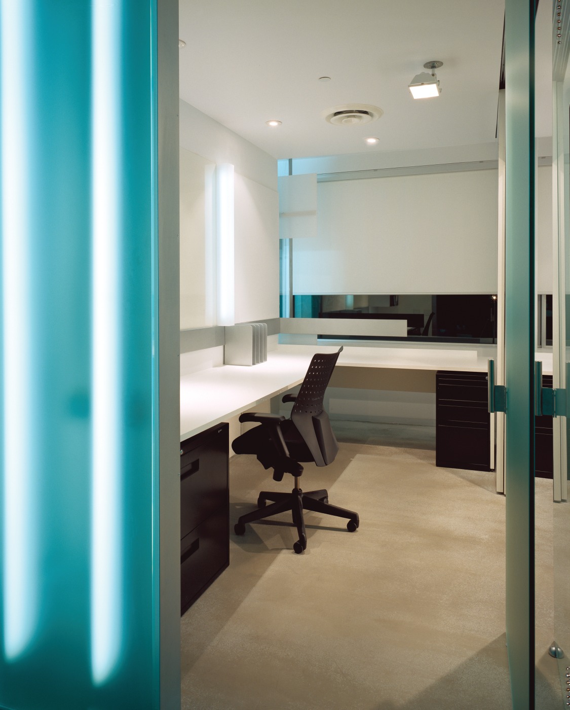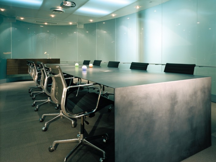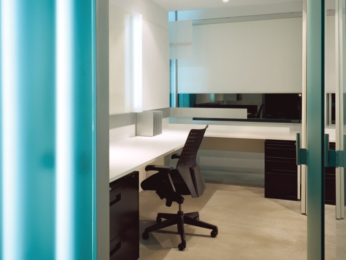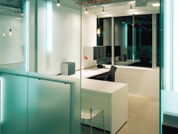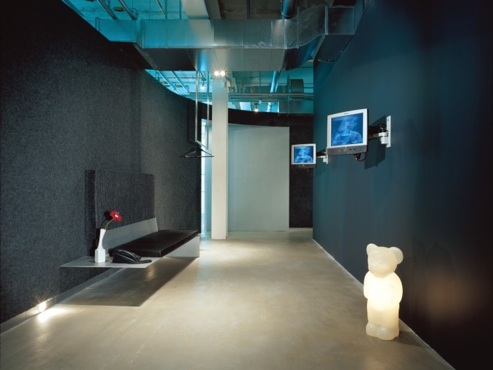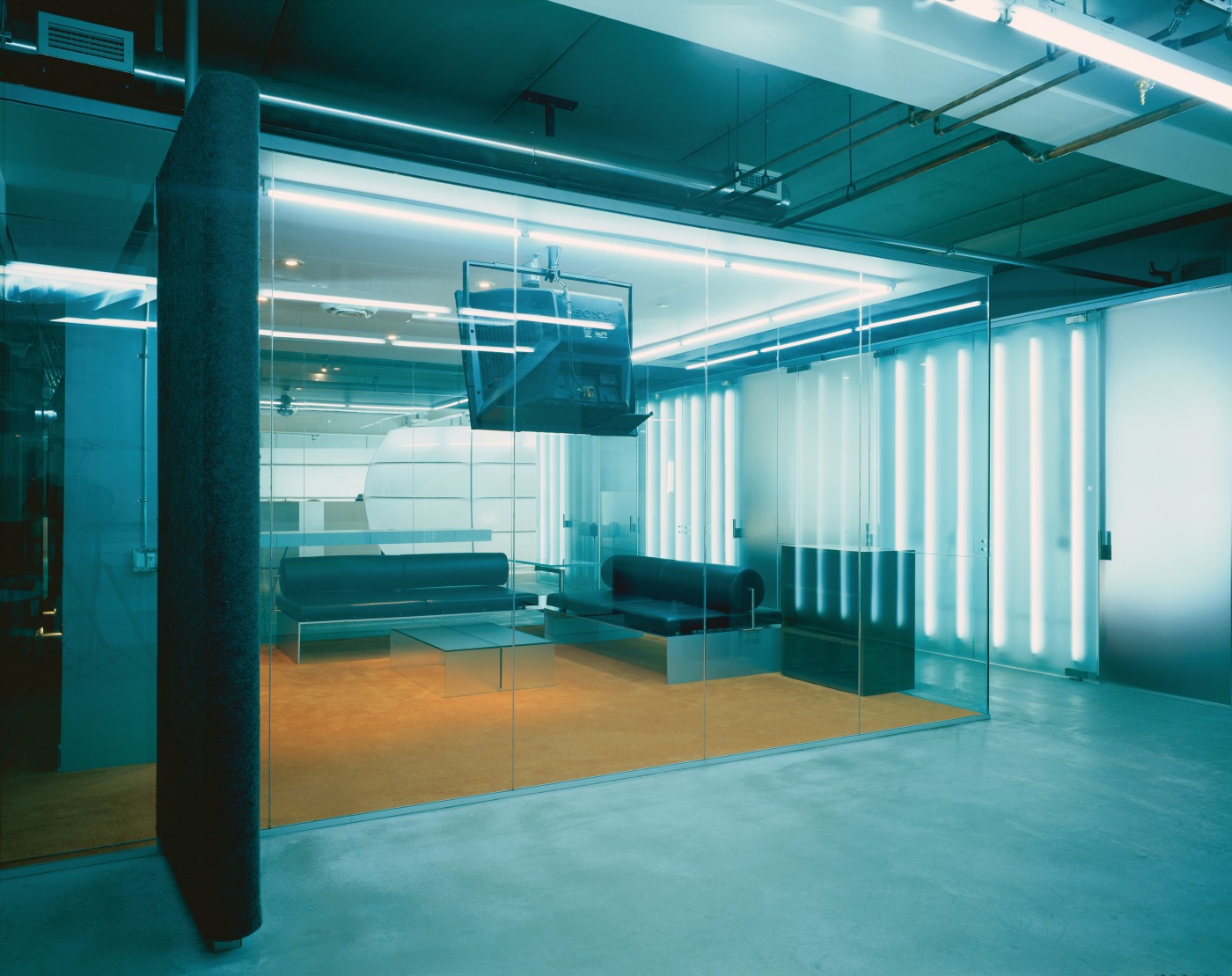 “Felt Wall” activated and linked by movement – a cinematic promenade. For Grip, the Narrative is intended to evoke – on a subconscious level – both their industry (through a heightened sense of materials and objects) and by paralleling Grip’s working methodology (engaging their clients in the creative process by revealing it). The “tableaus”, are freestanding programmatic spaces imbued with details within that inflect the space to engage the viewer. These details or “moments” are architectural interpretations of “wit”, requested by and analogous of the Client’s own work. The narrative, manifested in the form of the “Felt Wall” has multiple roles; it articulates a promenade that leads one through the space, serves to absorb sound and functions as a physical barrier to define the public and private zones of the Agency.