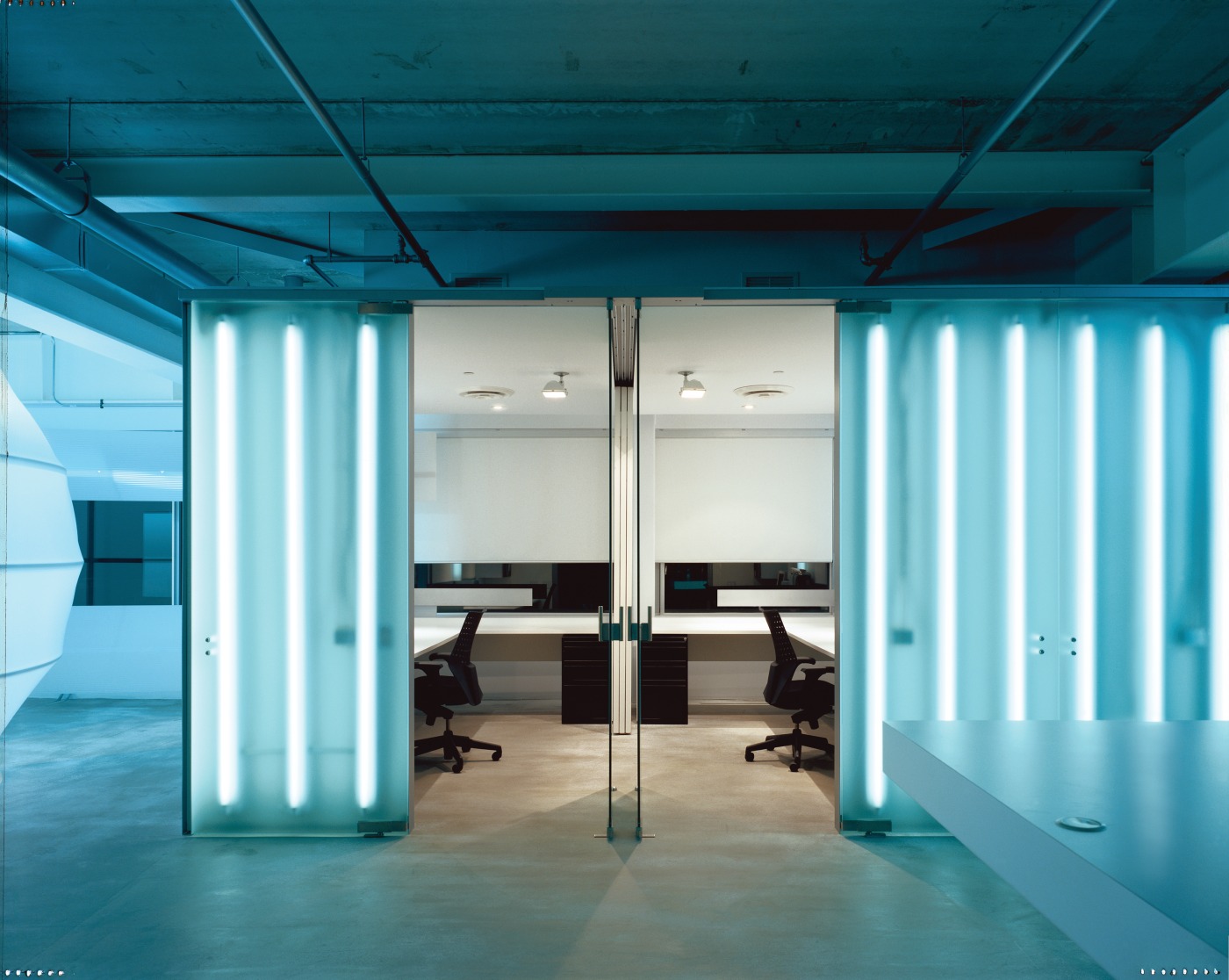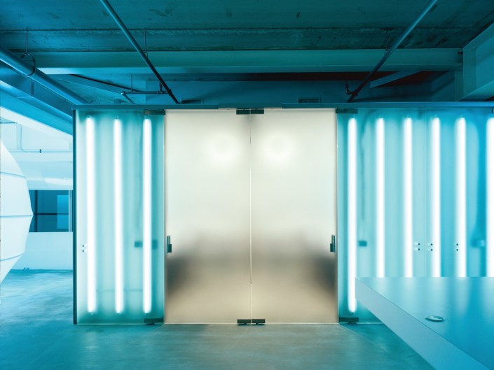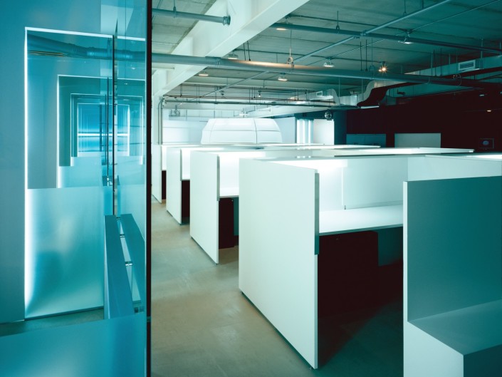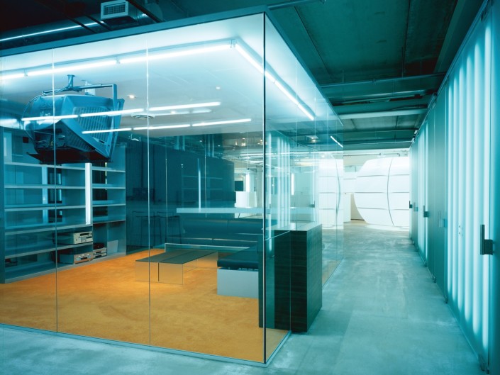 Inspired by the television commercials created by Grip and their methodology of engaging clients with the creative process, the design emanates from an architectural interpretation of a filmic narrative, a story developed as a series of “tableaus” activated and linked by movement – a cinematic promenade. For Grip, the Narrative is intended to evoke – on a subconscious level – both their industry (through a heightened sense of materials and objects) and by paralleling Grip’s working methodology (engaging their clients in the creative process by revealing it). The “tableaus”, are freestanding programmatic spaces imbued with details within that inflect the space to engage the viewer. These details or “moments” are architectural interpretations of “wit”, requested by and analogous of the Client’s own work. The narrative, manifested in the form of the