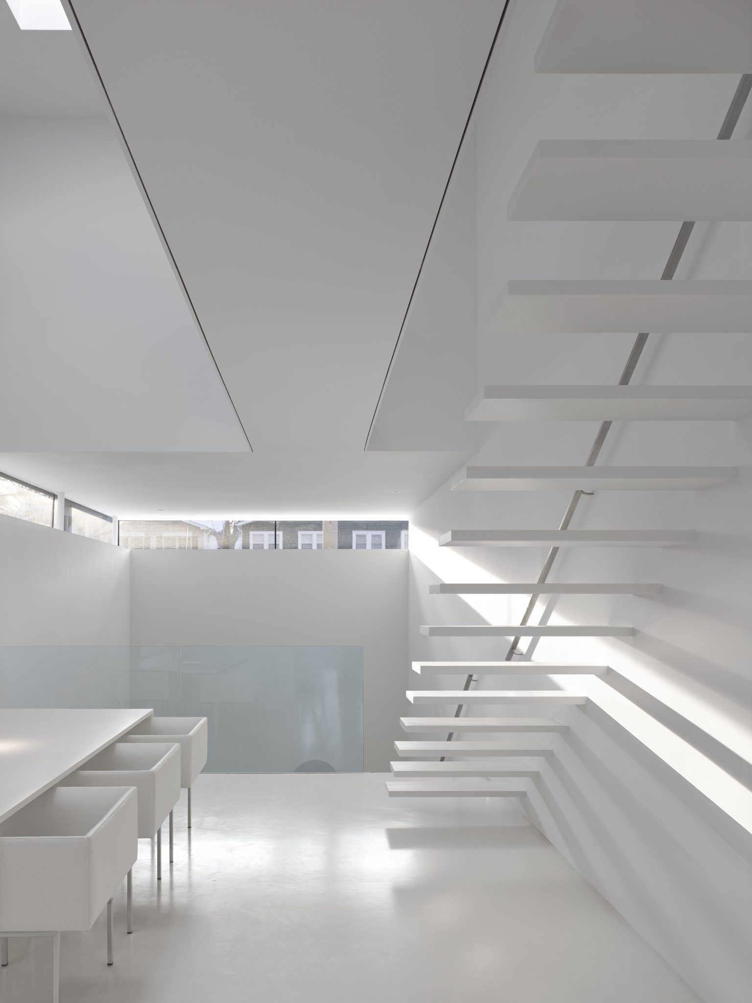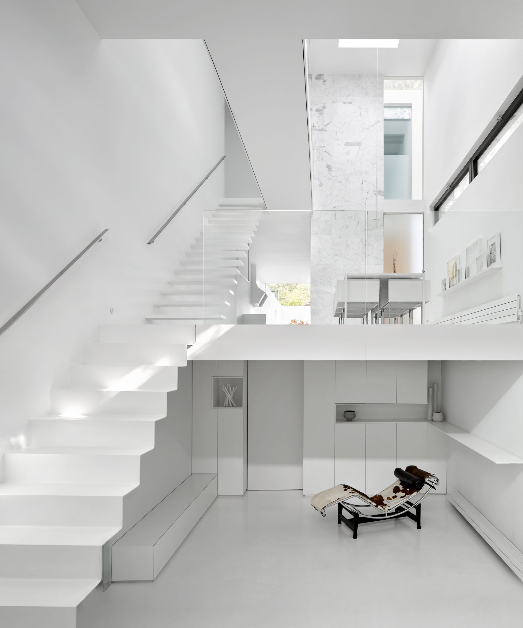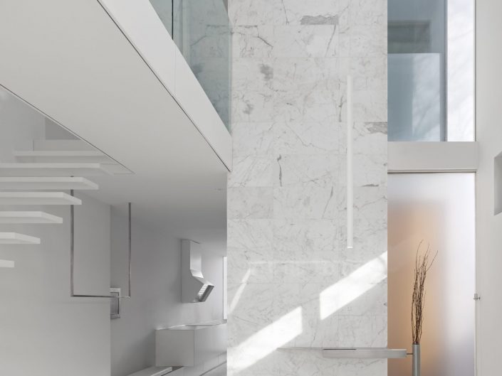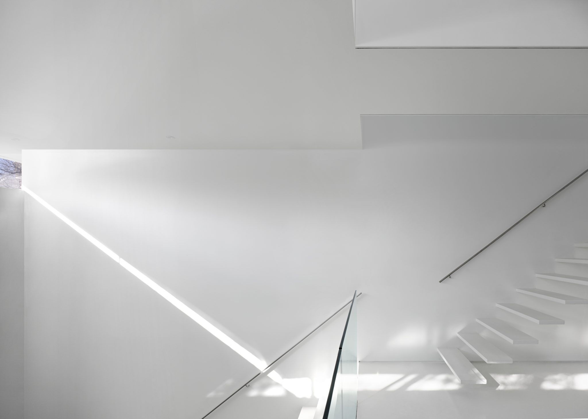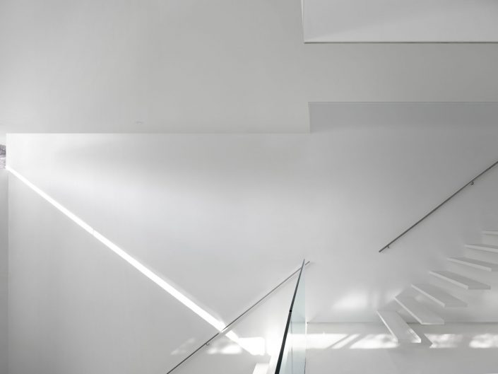 This includes the expansion and compression of single, double and triple height spaces, and through one’s engagement of interior elements such as bridges and stairs. The house is configured to capture the ever-changing light and shadow effects in various areas of the residence. The shadows cast in the interior reveal the juxtaposition between the permanence of the architecture and the ephemeral of the natural.