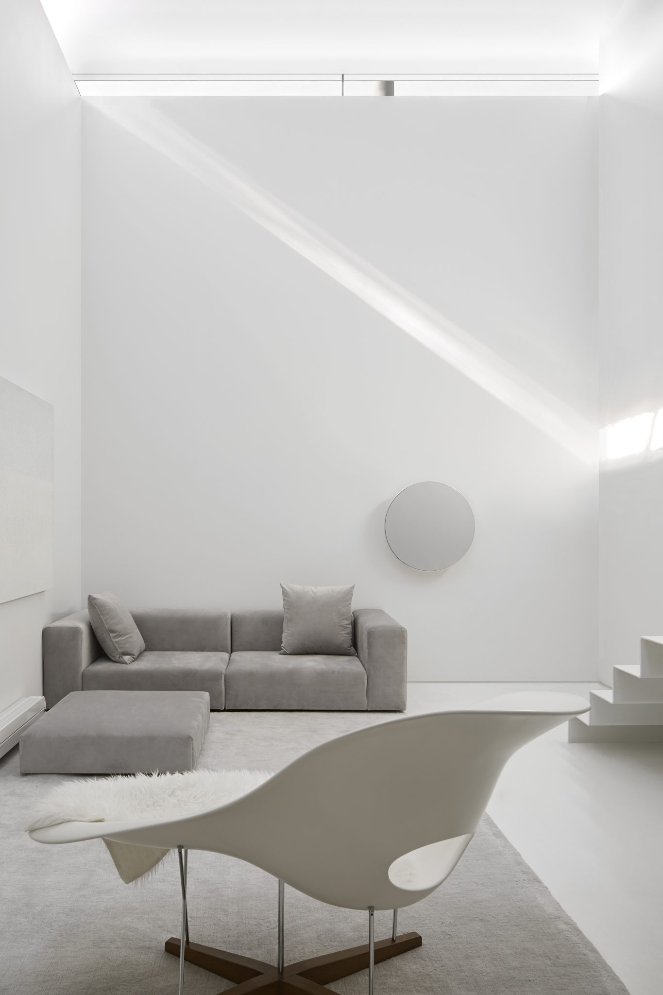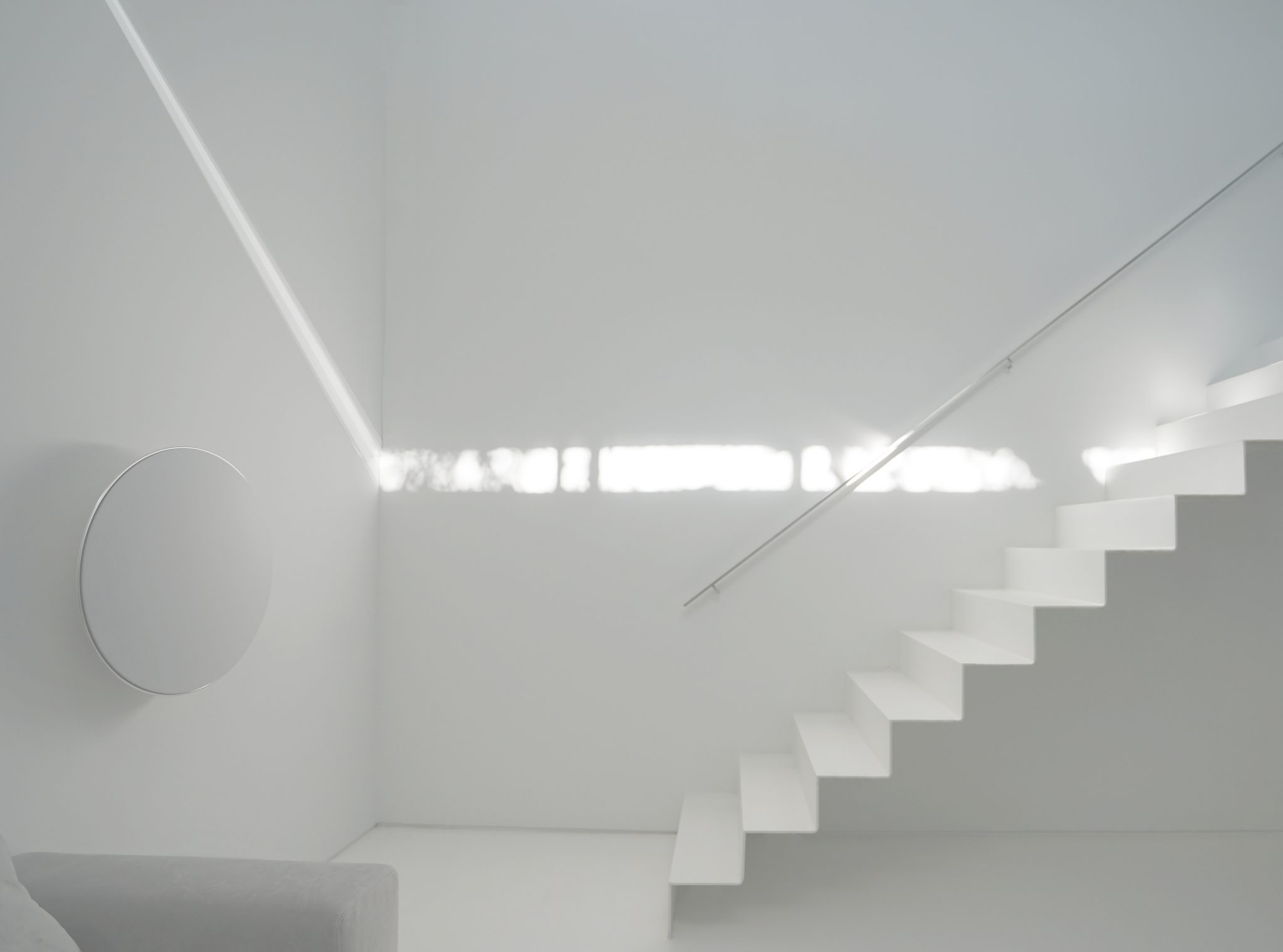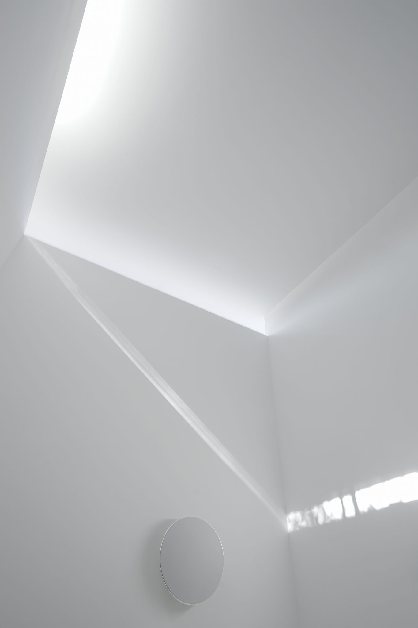 The residence was envisioned as an instrument for the appreciation of the profound ephemerality of time. The interior walls act as a blank canvas capturing the shadows of the abstracted forms and its movement, for example, of trees swaying in a breeze, in effect projecting the exterior environment into the interior. Like a reverse sundial, beams of light move across the walls and floors of the house. The moment is mesmerizing, cinematic, fleeting; in an instant the shadows transform or disappear altogether.
