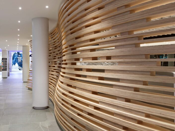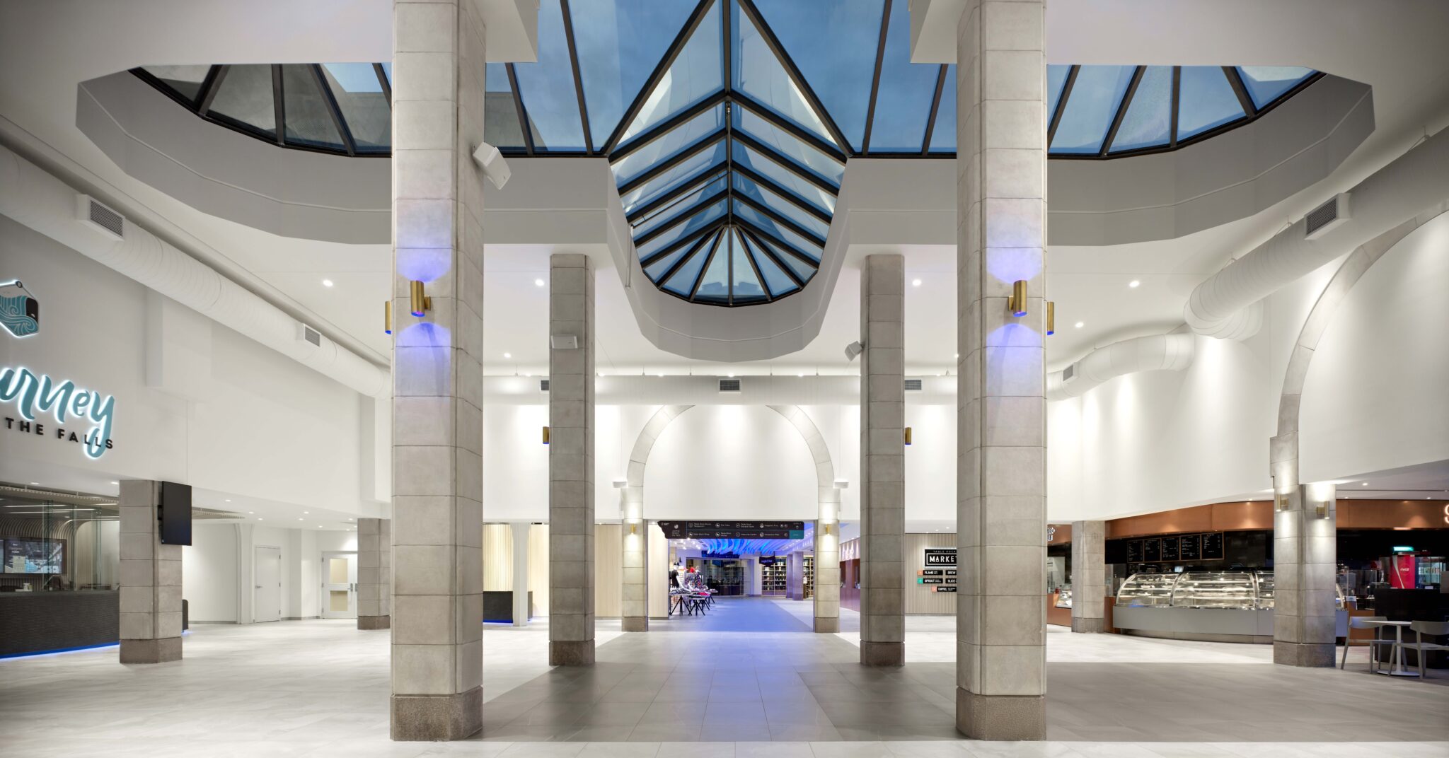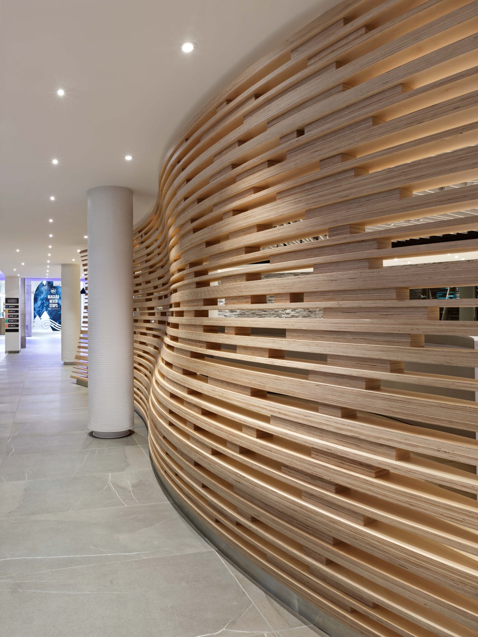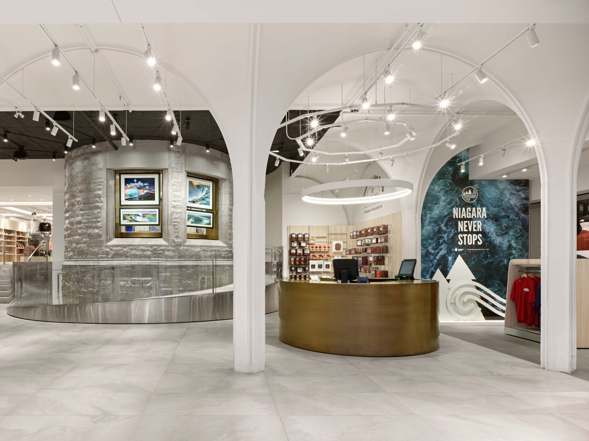 A key element of the design concept included preserving and showcasing the rich heritage, culture and lifestyle that has been built around the Falls, while supporting a dynamic business environment. The objective of the renovation is to elevate the retail and hospitality experience inspired by the history and natural wonders of its location, creating spatial narratives with metaphorical forms and details to engender a memorable experience.